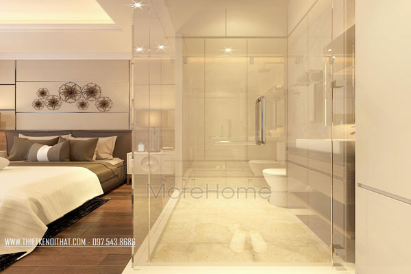 - Đem đến sự liền mạch cho không gian, vừa ngăn cách khu vực khô và ướt nhưng vẫn khiến phòng tắm không hề bị chia vụn.