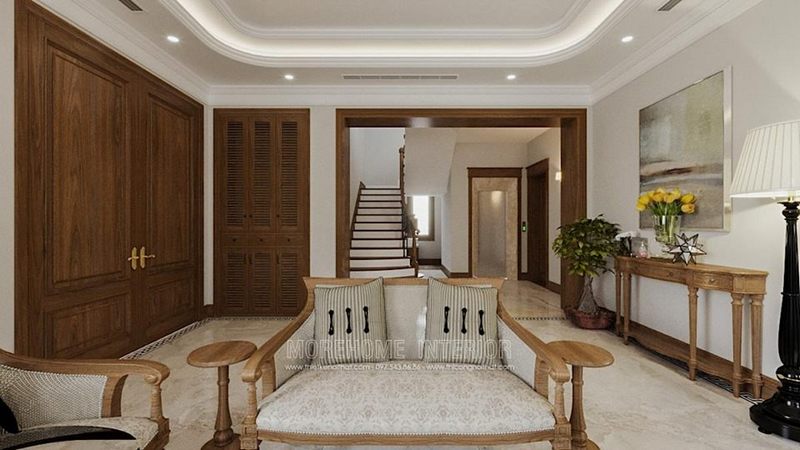 Kiến trúc tường vòm của biệt thự này được thiết kế theo phong cách tân cổ điển, tạo nên một vẻ đẹp sang trọng.